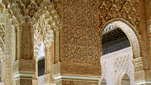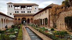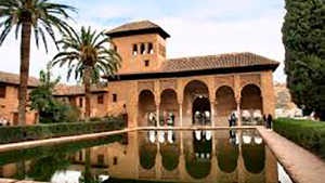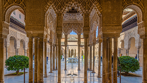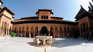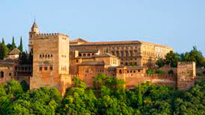 La Alhambra es una ciudad palatina andalusí situada en Granada, en la comunidad autónoma de Andalucía, España. Consiste en un conjunto de palacios, jardines y fortaleza (alcázar o al-qasr القصر) que albergaba una verdadera ciudadela dentro de la propia ciudad de Granada, que servía como alojamiento al monarca y a la corte del Reino nazarí de Granada. Su verdadero atractivo, como en otras obras musulmanas de la época, no solo radica en los interiores, cuya decoración está entre las cumbres del arte andalusí, sino también en su localización y adaptación, generando un paisaje nuevo pero totalmente integrado con la naturaleza preexistente. En 2016 fue el segundo monumento más visitado de España, por detrás del Templo Expiatorio de la Sagrada Familia de Barcelona, recibiendo la cifra histórica de 2.615.188 visitantes.